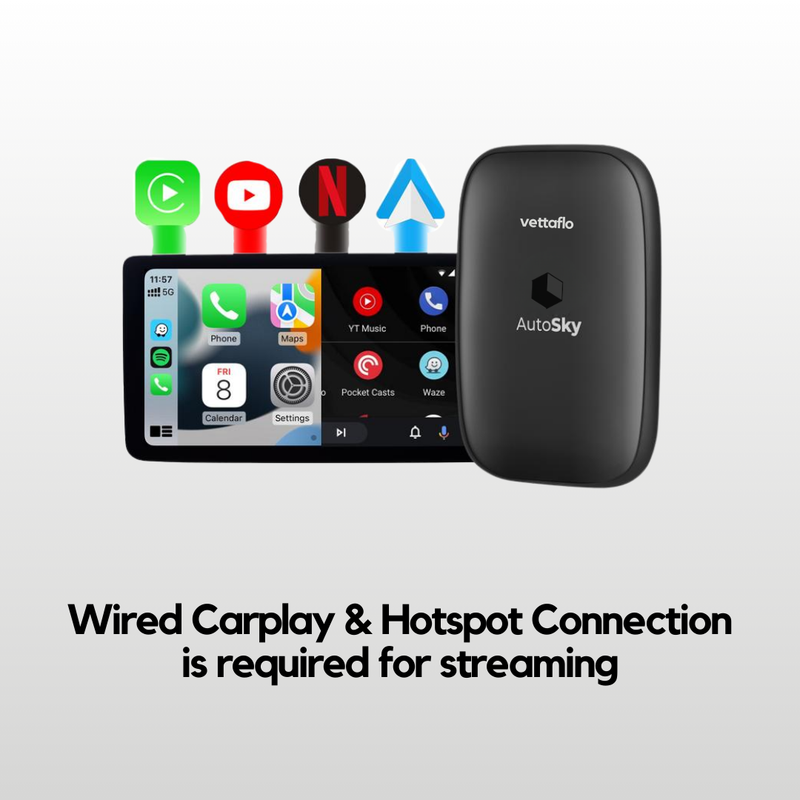 Yes. Your vehicle must have wired Apple CarPlay or Android Auto. The device plugs into that existing USB port to unlock video streaming. You’ll also need an internet connection—either by turning on your phone’s hotspot or using an in-car WiFi plan.